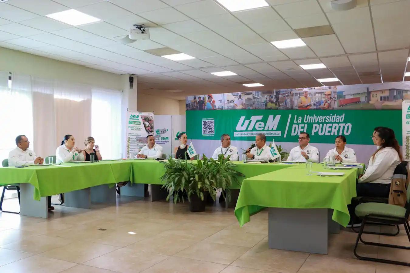 El rector de la UTeM estuvo acompañado por la Mtra. Carolina Anaya Rojas, secretaria académica; la Lic. Dilva Yadira Nava Covarrubias, directora de Vinculación; y la C.P. Fabiola Figueroa Mendoza, directora de Administración y Finanzas, reafirmando el compromiso institucional de continuar fortaleciendo los lazos de colaboración con el sector portuario en beneficio de la formación integral de las y los estudiantes.